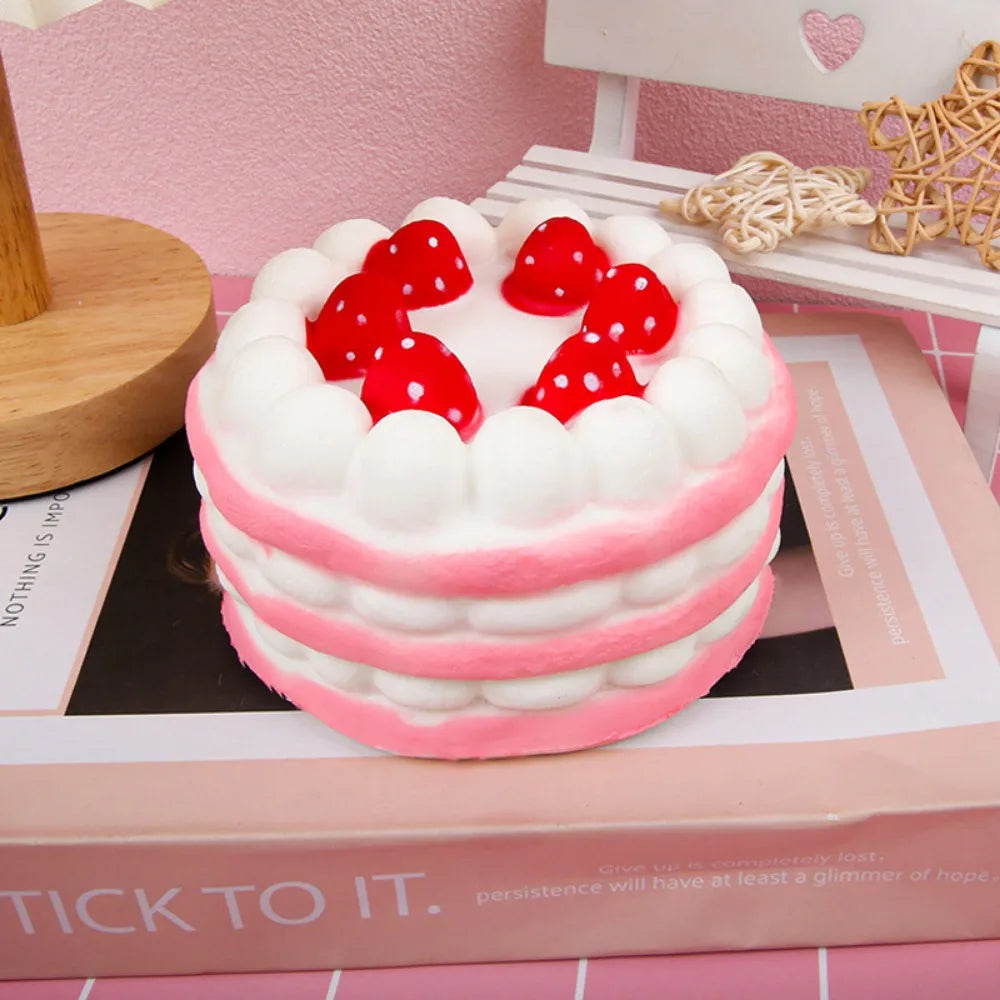 Whether you're gifting it to a friend or keeping it for yourself, the Squishy Strawberry Cake is a delightful addition to any collection. It’s cute, calming, and perfect for squeezing your stress away, one slice at a time.